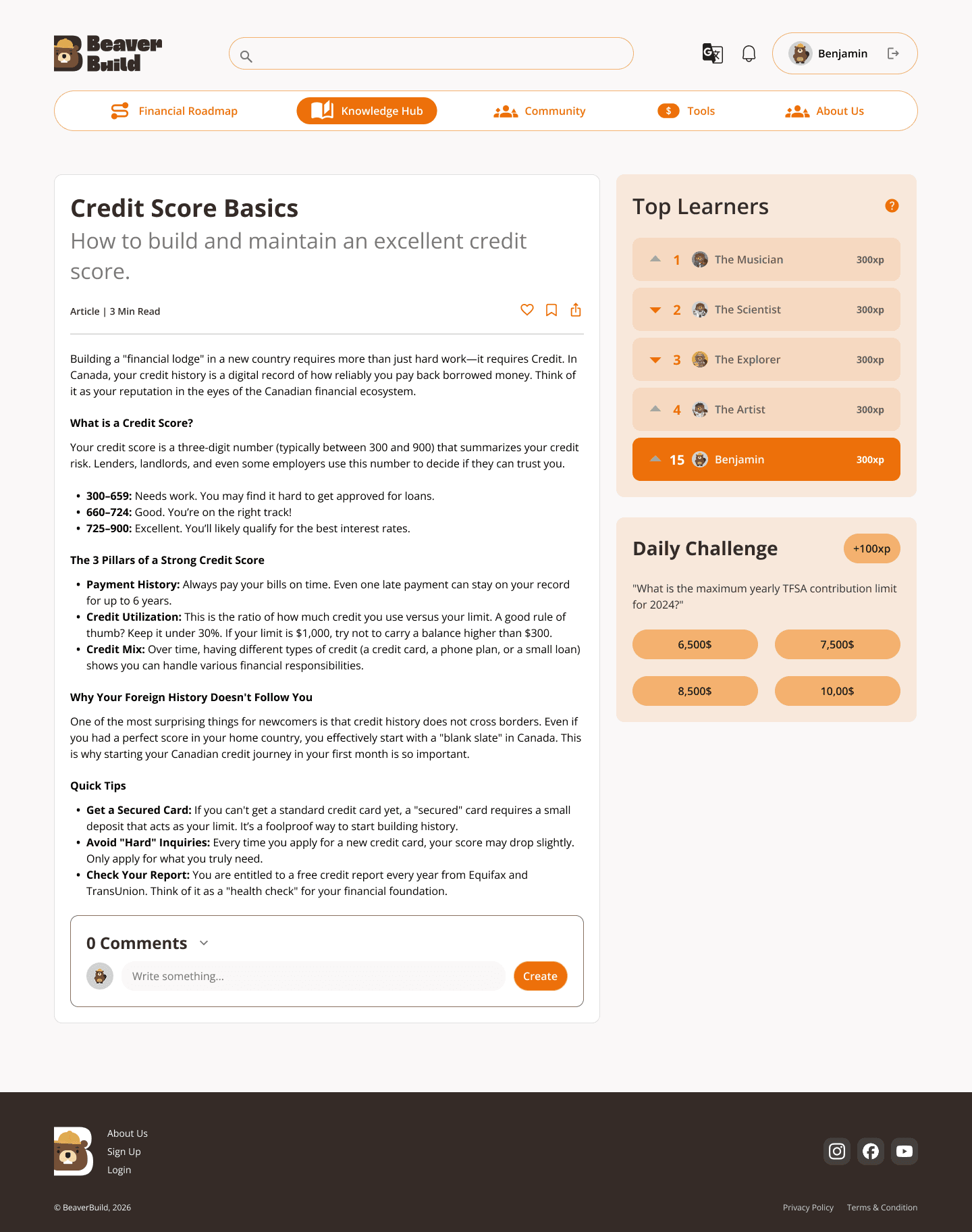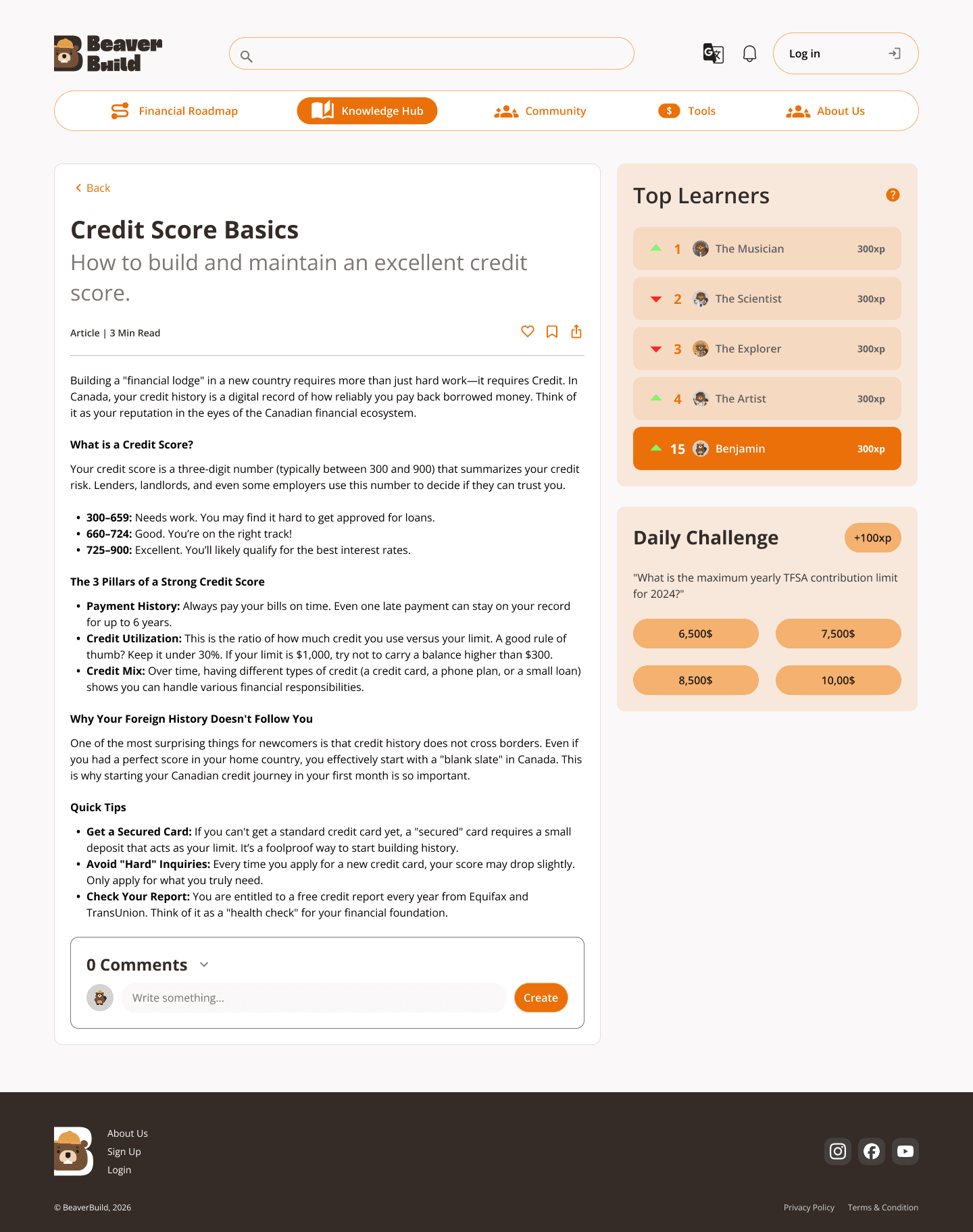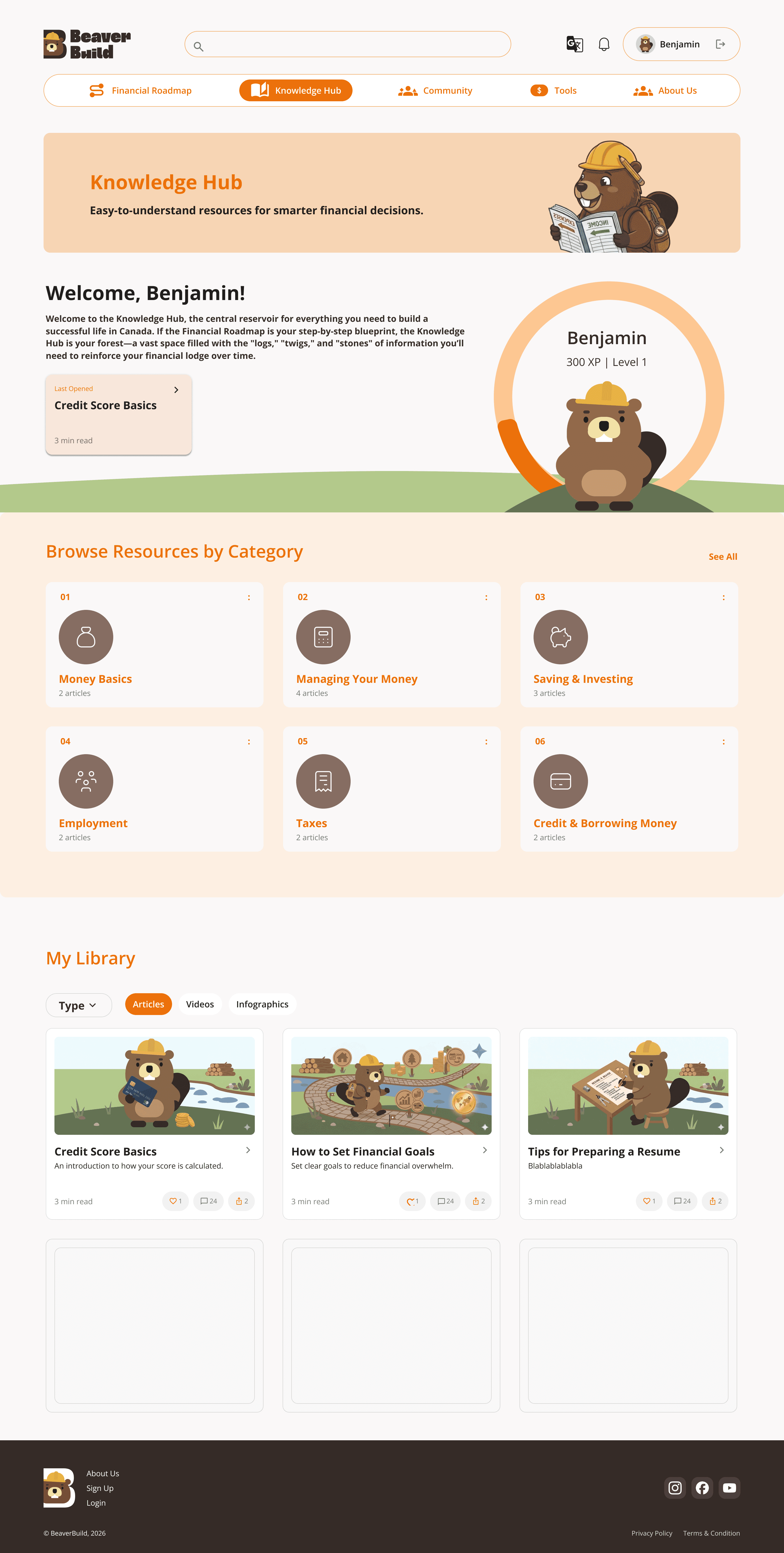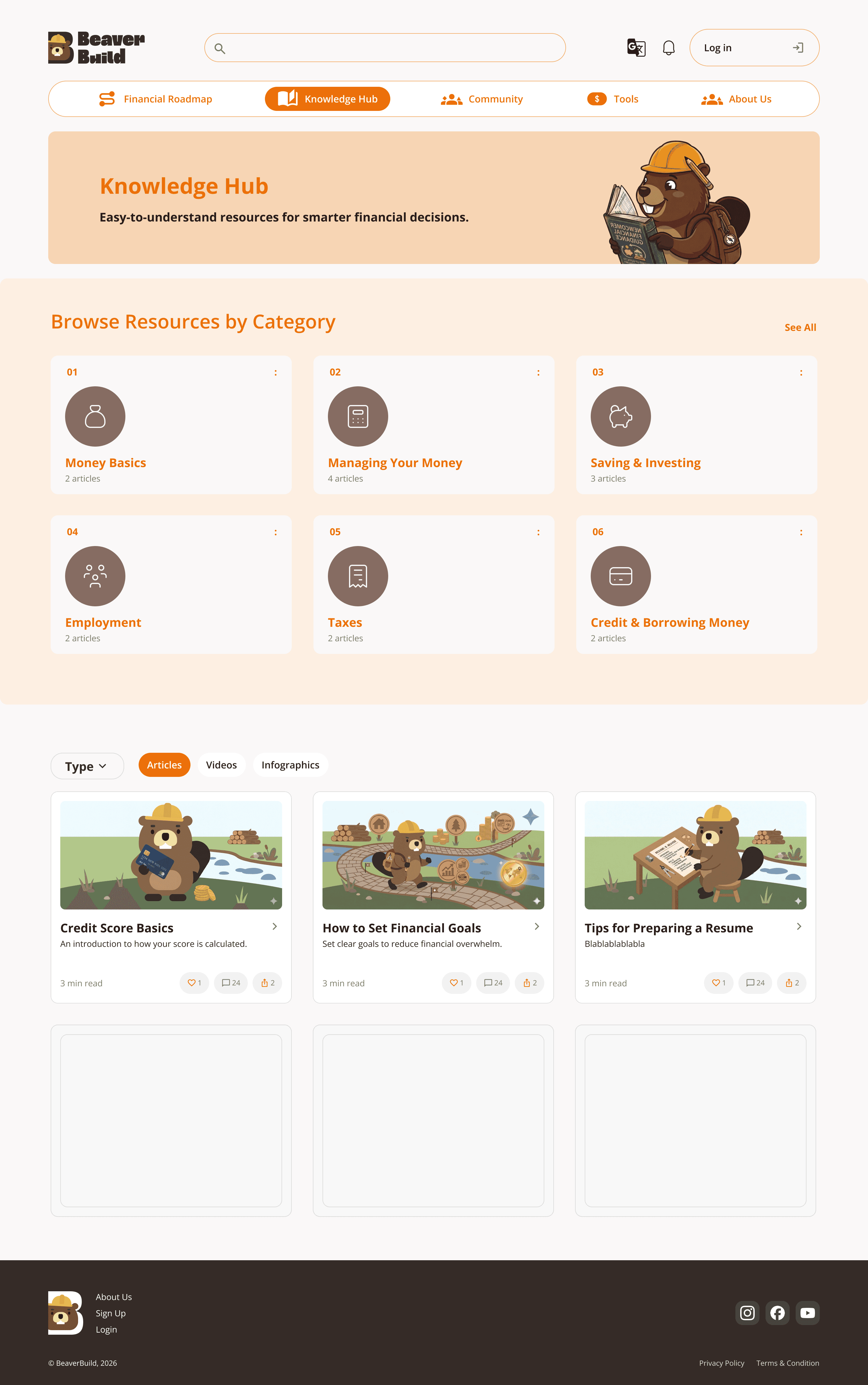 The Knowledge Hub organizes financial topics into clear categories, making it easier for users to find relevant information.
